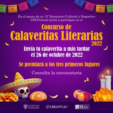 Como parte del programa de actividades del encuentro cultural y deportivo. Escribe tu calaverita y participa en este concurso que #UDGVirtual organiza como parte de su 13º Encuentro Cultural y Deportivo. Manda tu calaverita a más tardar este 26 de octubre. Consulta la convocatoria | https://bit.ly/calaveritaudgvirtual
