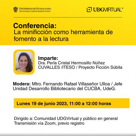 Si gusta la minificción, te invitamos a unirte a esta conferencia que impartirá la Dra. Perla Cristal Hermosillo Núñez @Cuvalles Udeg /ITESO / Proyecto Ficción Súbita Lunes 19 de junio 2023, 11:00 horas Transmisión vía Zoom, previo registro https://bit.ly/3CgcImL