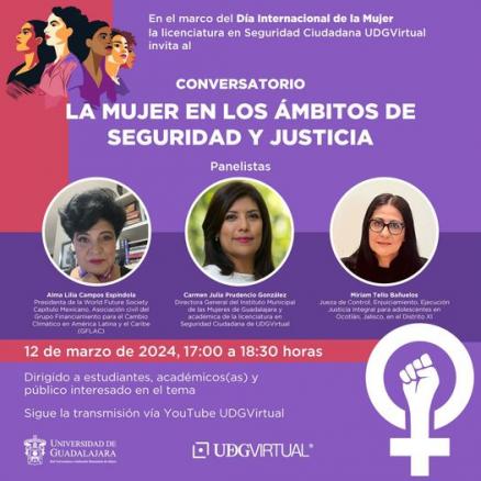 En el marco del Día Internacional de la Mujer este conversatorio tiene el objetivo de dialogar sobre la participación de la mujer en la seguridad y la justicia.