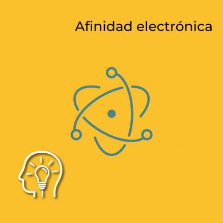 Unidad interactiva en la que se revisa la afinidad electrónica, la cual también da información química de los elementos. Por medio de un chat interactivo, se dirige al alumno a comprender la irregularidad de la afinidad electrónica. También se propone un simulador que funciona a partir de los elementos de la tabla periódica.