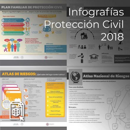Infografías de protección civil del Gobierno de México, cuya finalidad es promover la prevención de riesgos a partir de la concientización de la población sobre las situaciones de riesgo y las medidas que deben tomarse ante fenómenos naturales como tormentas eléctricas, inundaciones y ciclones.