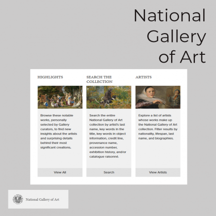 Página web de la Galería Nacional de Arte en la que puedes buscar información de diferentes artistas y sus obras, además de las exposiciones y guías del lugar.